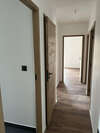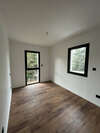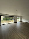 Le carrelage imitation parquet dans la pièce de vie allie à la fois facilité d'entretien et ambiance chaleureuse et moderne. Les menuiseries en aluminium RAL 7016, ainsi que la façade blanche, confèrent à la maison un style résolument contemporain. La grande baie vitrée du salon, d'une largeur de 3,60 mètres, offre un accès généreux aux espaces extérieurs tout en apportant un réel gain de lumière.