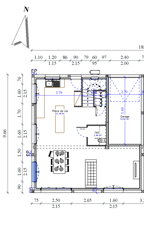 Rez-de-chaussée Pièce de vie exceptionnelle de 53m² baignée de lumière grâce à sa double exposition.