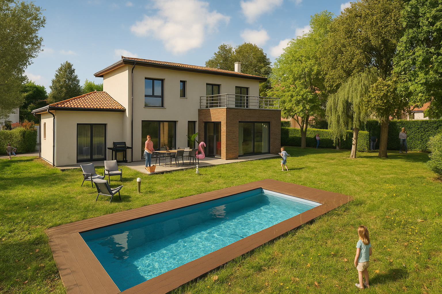 Prestations haut de gamme : matériaux de qualité et chauffage au sol par pompe à chaleur air-eau.