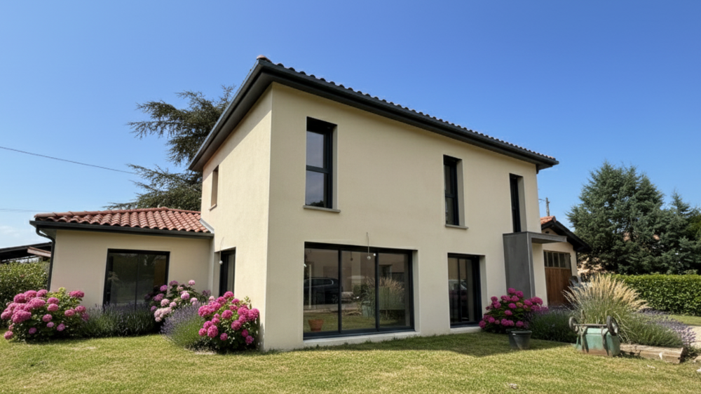Conçue sur un vide technique et en conservant le garage double existant, cette maison offre une isolation exceptionnelle et architecture originale.