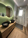 Le vaste séjour de 48 m², baigné de lumière grâce à ses grandes baies vitrées et sa triple exposition, est idéal pour des moments conviviaux en famille. La cuisine ouverte, à la fois moderne et pratique, se fond harmonieusement dans cet espace de vie.