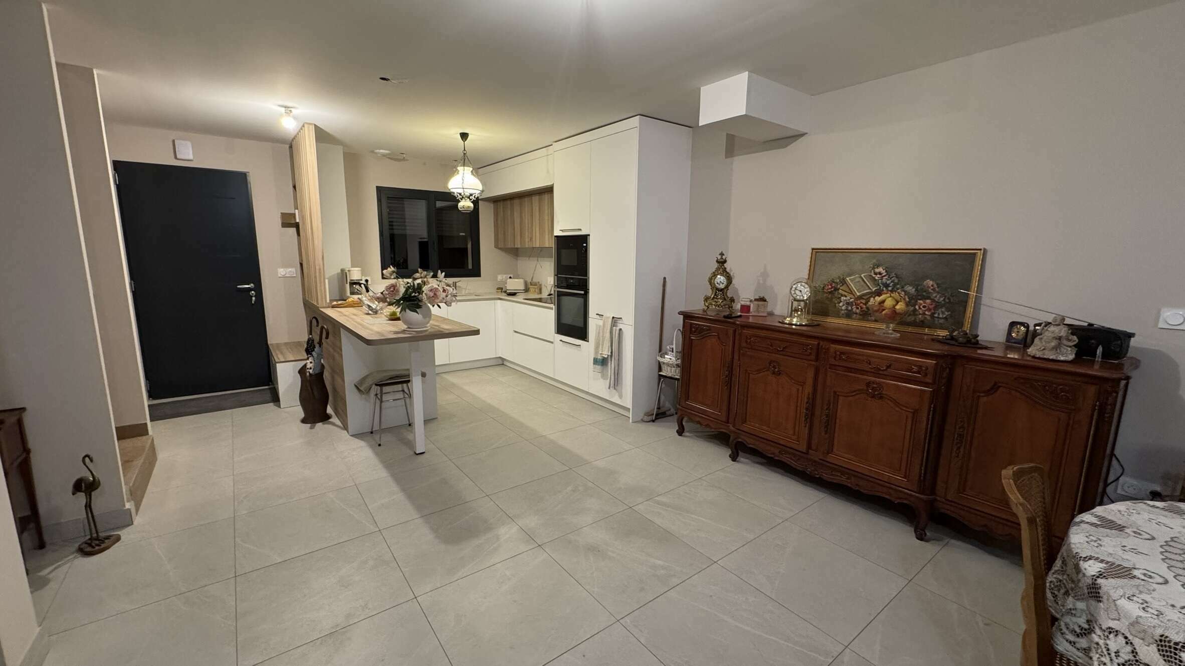 À l'intérieur, nos clients profitent d'un grand séjour de 44 m², d'un espace lumineux et spacieux parfait pour les moments de convivialité en famille ou entre amis. La suite parentale, située au rez-de-chaussée, offre un espace de détente et de tranquillité, avec une salle d'eau privative et des rangements intégrés.